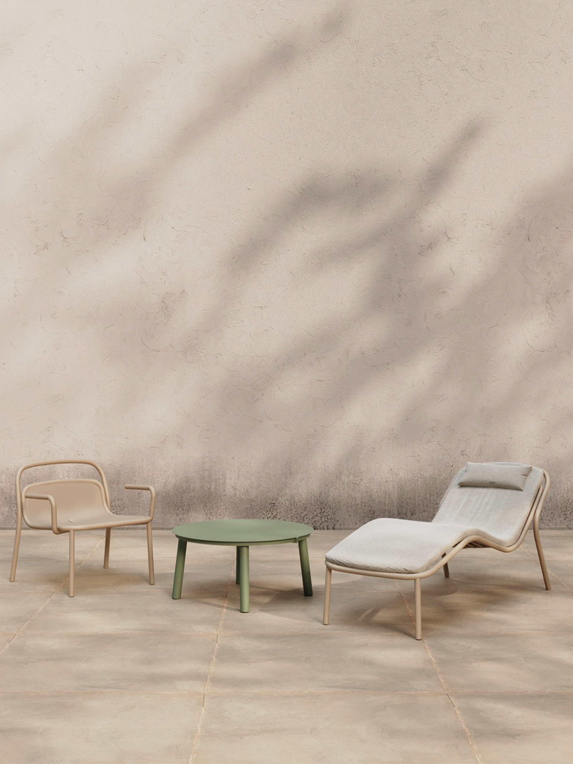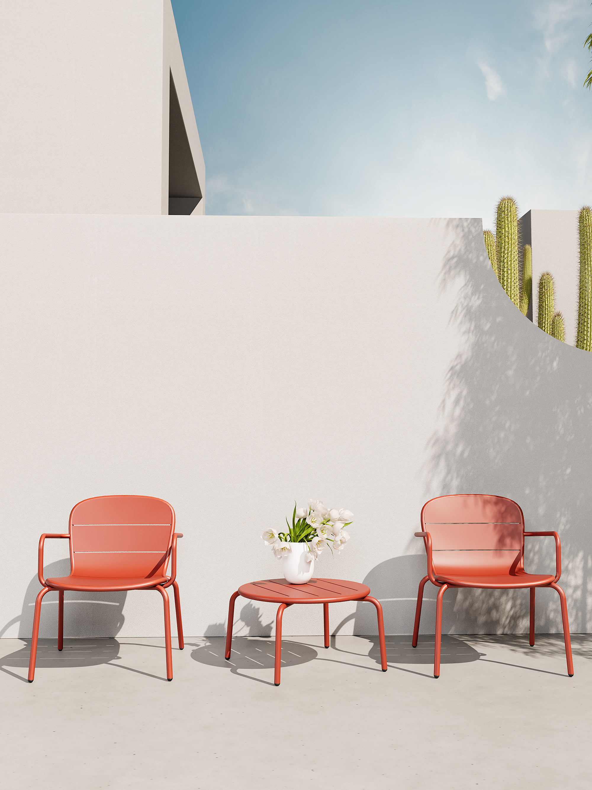 Resistant and light, they are easy to move around, the chair and lounger can be stacked easily.